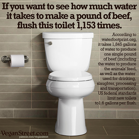 In all, roughly 40% of the world's arable land is used for food production, while only a quarter of that food is for human consumption. The rest, a staggering 30% of the world's arable land, is used to produce animal feed and commands a third of the world's fresh water. Worse, the meat resulting from this industrialized animal agriculture is not divided evenly. For instance, Americans eat 270 lbs of meat a year on average, while Bangladeshis eat 4 lbs. If the entire world were to eat as much meat as Americans do, the global land required would be 75% more than is already used, a number so high the Earth would have to be quite a bit larger to support it. Meanwhile, much of the world gets no food at all or raises livestock feed for export to countries with a high demand for meat, creating an unequal burden of production versus consumption between the poorest and richest people on the planet.