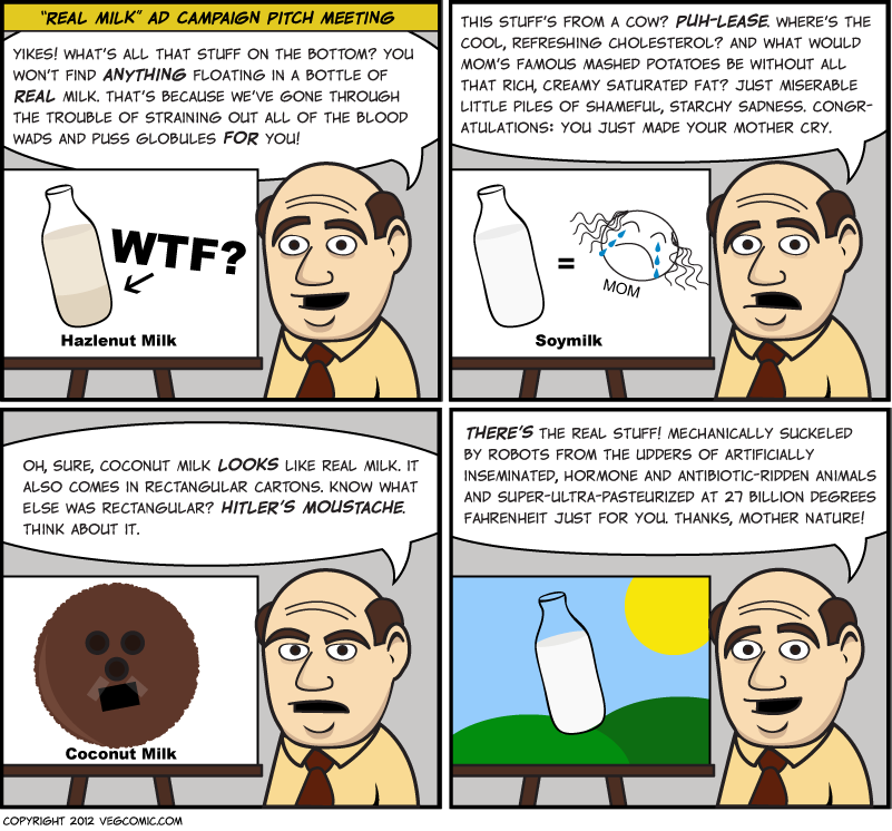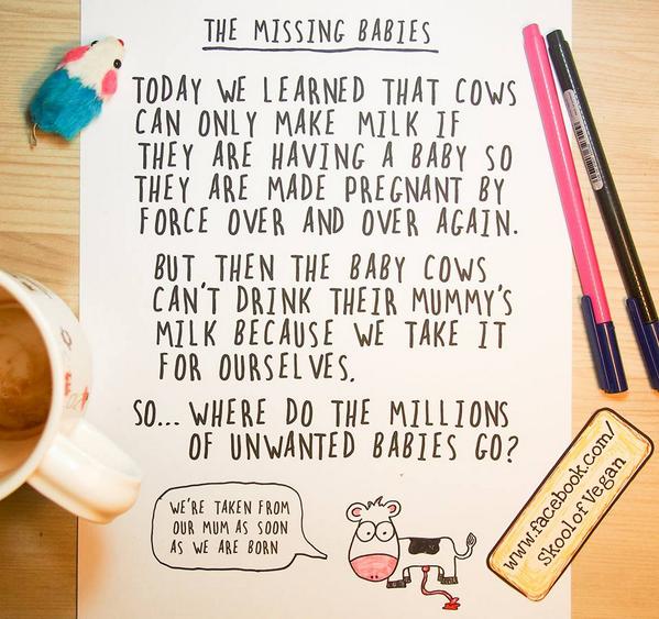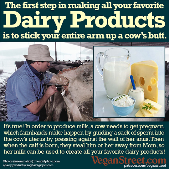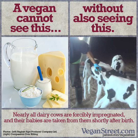 Suffering and death are required components of contemporary milk production. Cows are force-bred annually to produce milk, which translates to well over 200,000,000 calves per year worldwide. Female calves are raised to be milk cows, while male calves are chained in tiny pens where they cannot turn around until they are slaughtered for veal at just a few months of age.