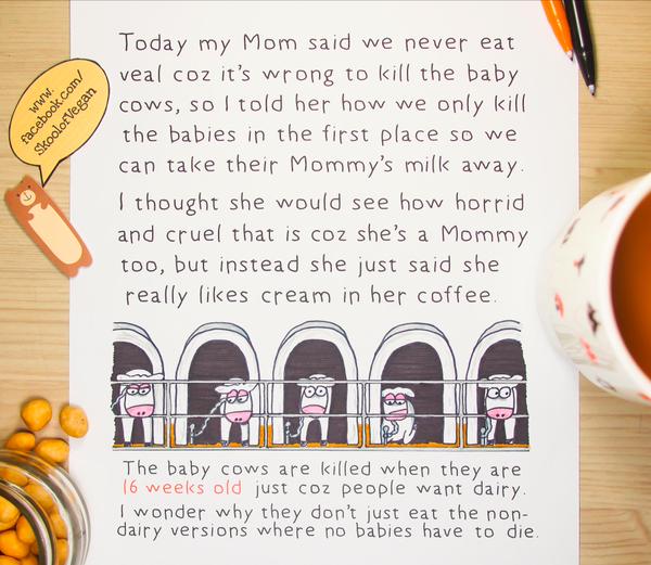 Making milk is a normal and natural activity that cows do not suffer or die from, so eating dairy is not an ethical issue.