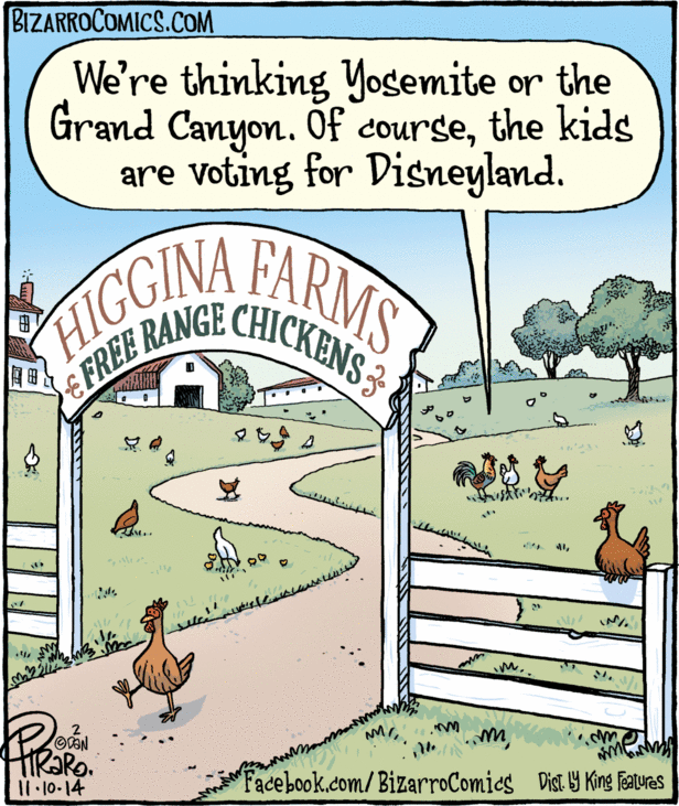 +Chicken Little: "Except the bird doesn't suffer from laying eggs. You wanna talk about cage-free, I'll agree with you, but honestly... no. They'll lay eggs whether humans are involved or not. Not suffering, at all."