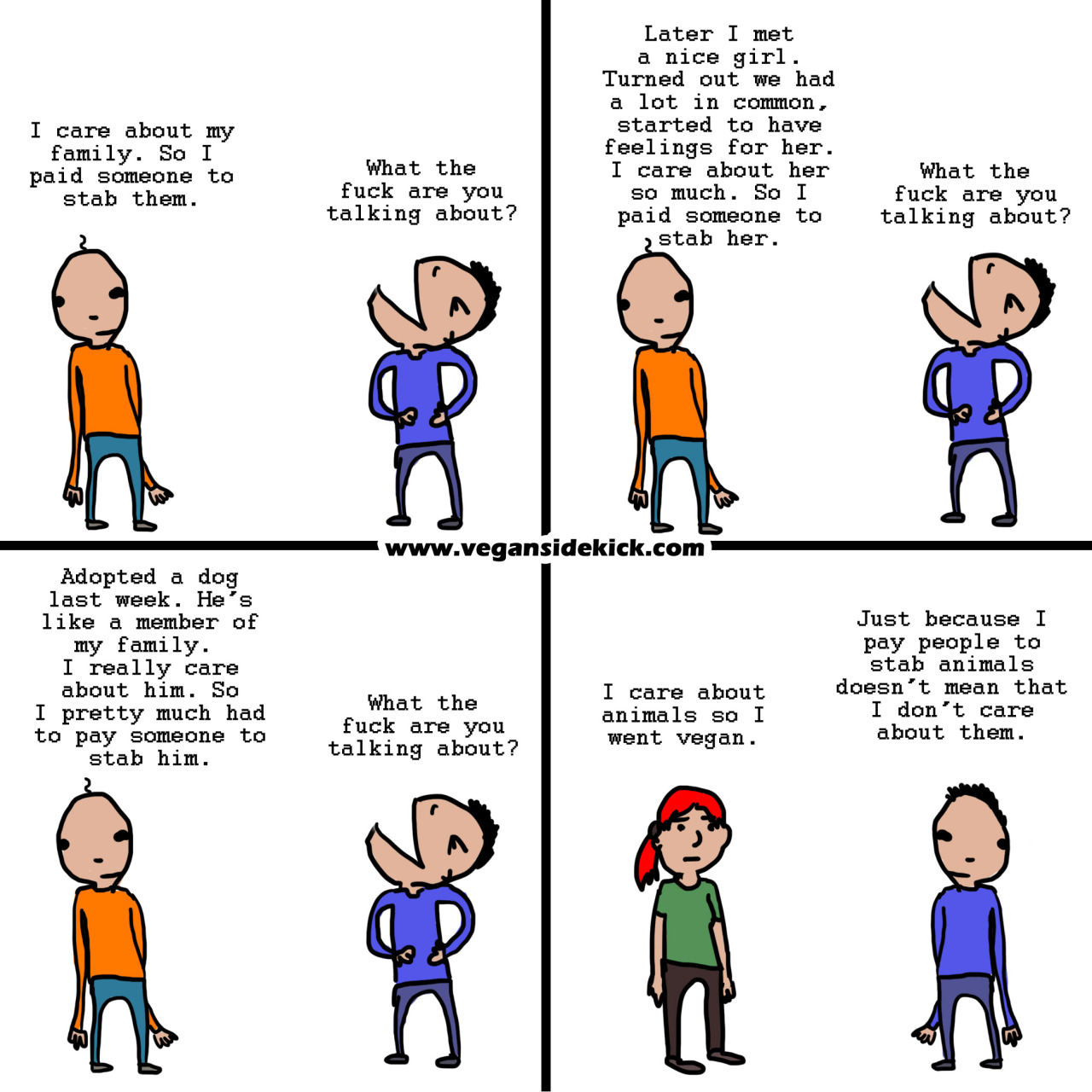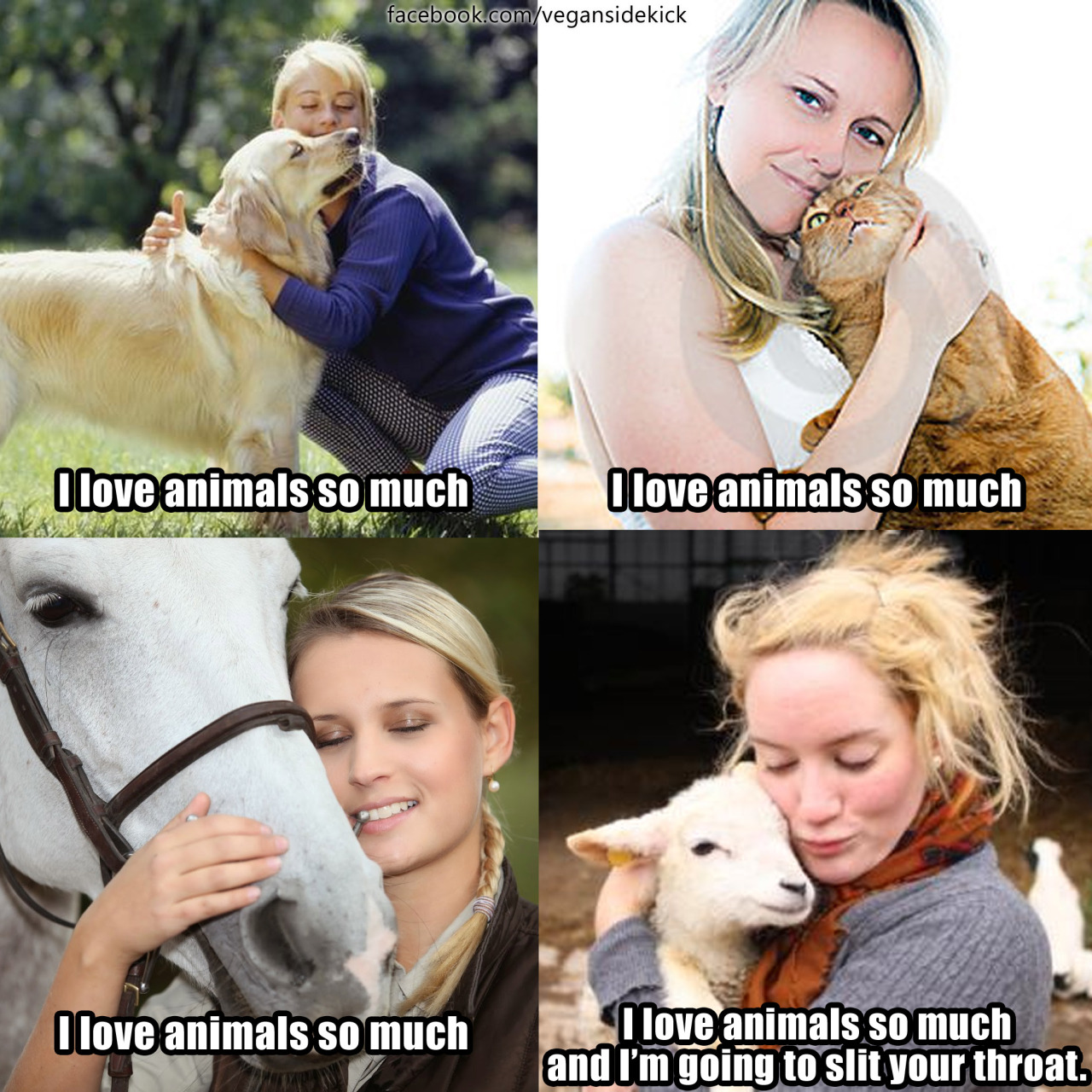 ""Animal lovers" who eat meat are really just some-animal-lovers. They love the "cute" animals, the "pretty" animals... the animals society deems deserving of love, i.e. dogs, cats, and bunnies."