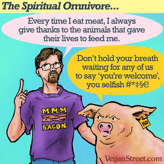 I honor the animals I eat with my hunting practices, or my farming practices, or by simply understanding that I am eating sentient beings who sacrificed their lives so that I may continue to live.