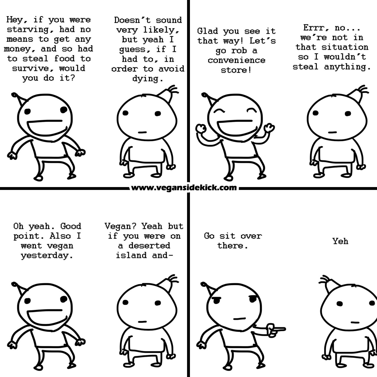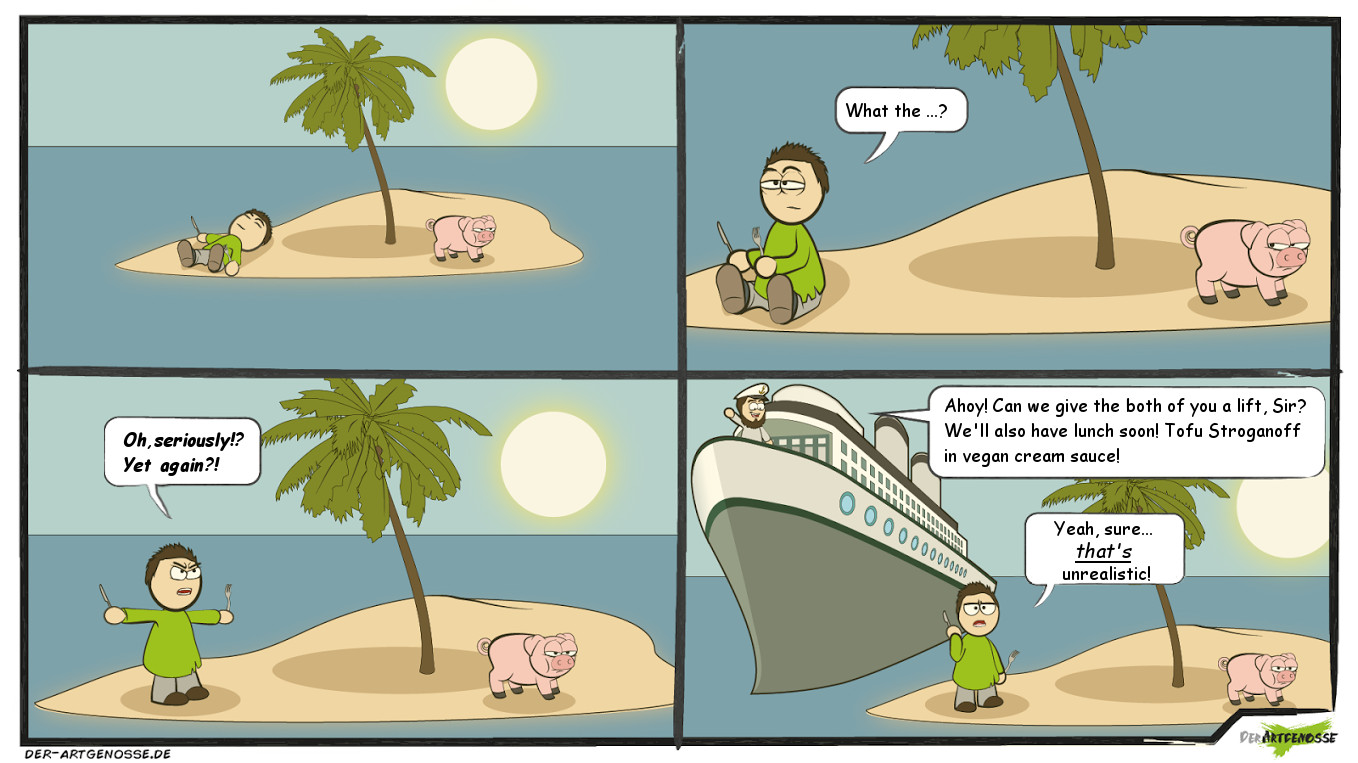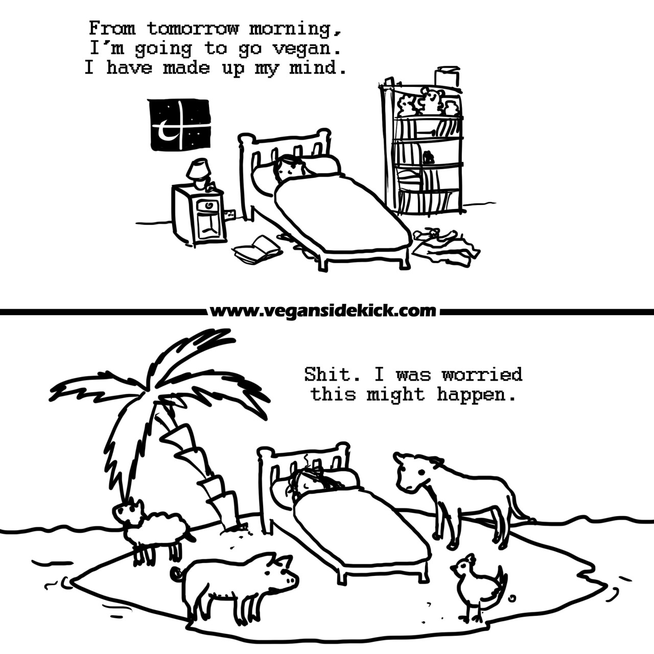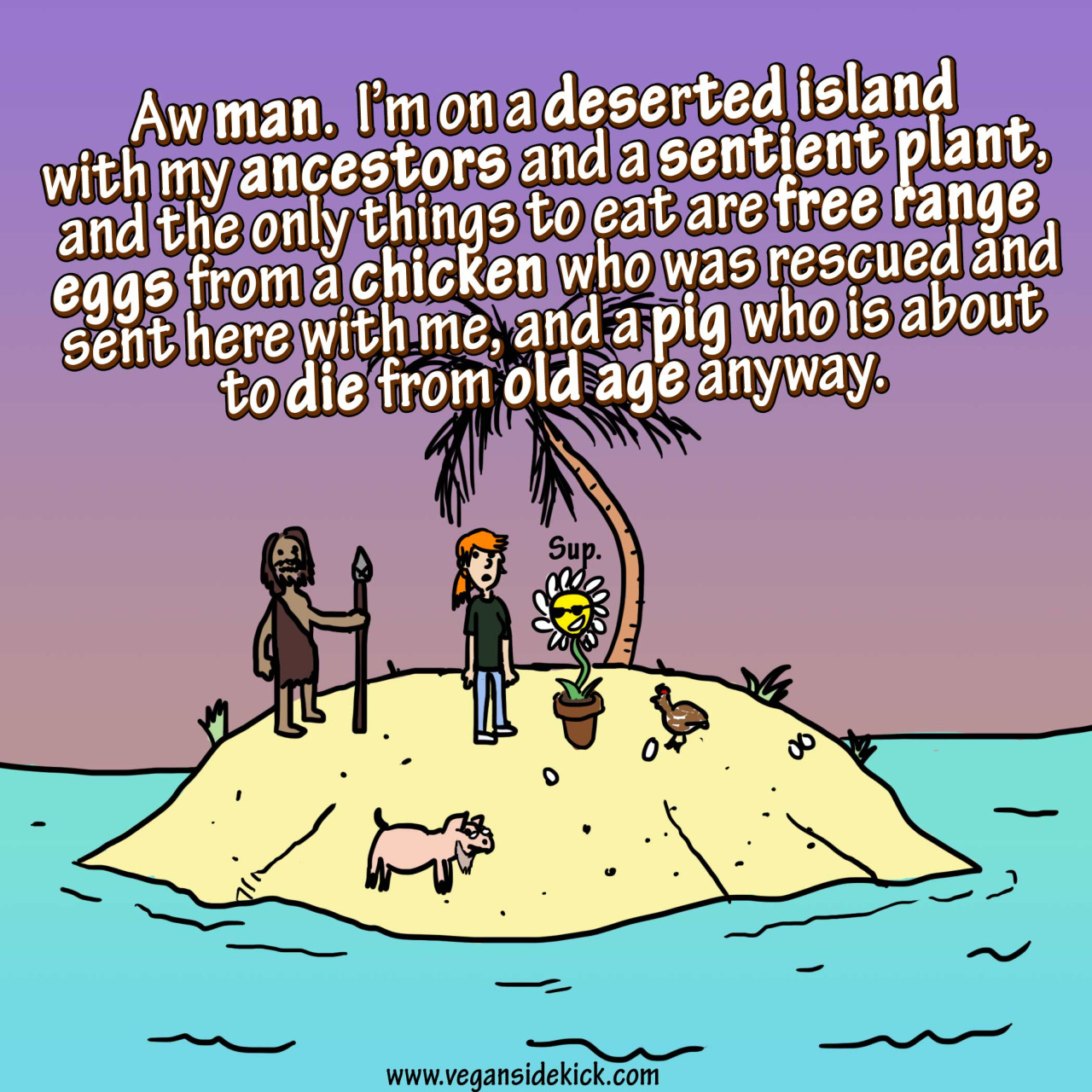 As vegans, we are commonly asked the “deserted island” question. “Sure, you’re vegan, but what if you were stranded on a desert island…what would you eat then?” The simple answer is, “Whatever plants the animals are eating.” To take this a step further, I’d like to pose that those same people answer this question: if a toddler was placed on an uncharted island with abundant wildlife and plant life, would the child grow up a vegan or a meat-eater?