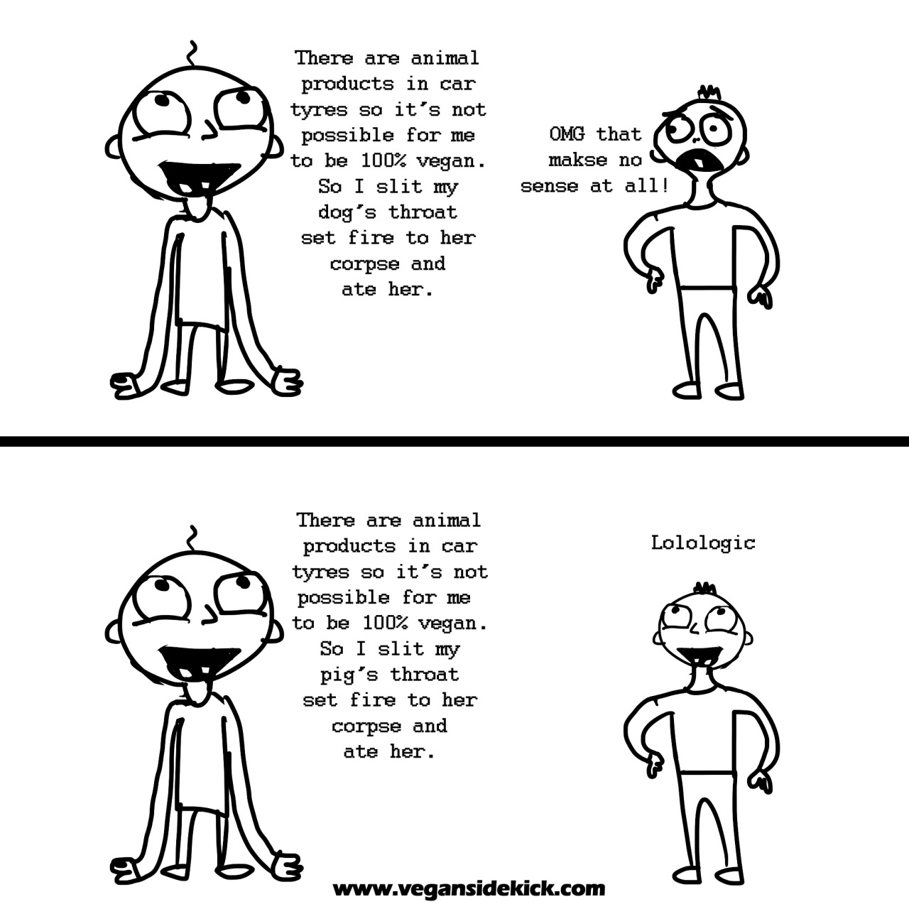 The perfect vegan uses their life as a statement that wearing, exploiting, killing and eating other animals is fundamentally wrong. He/she will inconvenience themselves and always verify ingredients, bring their own food when travelling, etc. because they are making a stand, with their life’s actions, knowing it’s not really much of an inconvenience compared to the holocaust that other animals are facing every day at the hands of humanity. Auschwitz happened because of racism…slaughterhouses happen because of speciesism. The perfect vegan wants no part, not even minuscule. The perfect vegan does not want complicity in the crimes against nonhumanity.