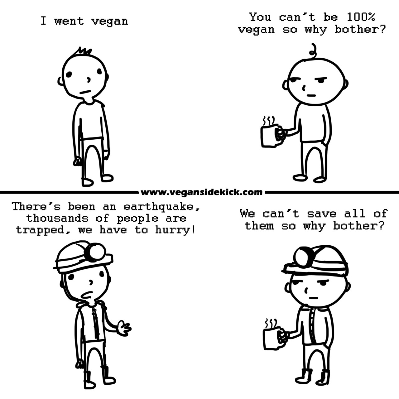 The perfect vegan cares about all injustice and opposes all oppression; whether the victim is oppressed based on species, race, gender, age, class, nationality, religious or sexual preference or any other unjustifiable reason to oppress sentient individuals. The perfect vegan uses rational discourse to relay this message to the public.